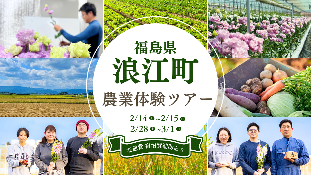 2月14日(土)〜15日(日)および2月28日(土)〜3月1日(日)に、浪江町の農業を、実際の現場で見て、聞いて、感じながら、これからの働き方や暮らし方を考える1泊2日の農業体験ツアーを開催します。 浪江町ならではの多様な農業のかたちに触れながら、「農業を仕事にすること」「地域で暮らすこと」を自分ごととして考えていきます。 現場を知り、人と出会い、話を聞くことで、これからの選択肢が少しずつ見えてくる、そんなきっかけになるツアーです。 ◯ 農業に興味はあるけれど、実際の現場を見たことがない ◯ 移住や就農に関心はあるが、まだ具体的ではない そんな方にも、安心してご参加いただける内容です。 少しでもご興味ある方はぜひご参加ください。 ※ツアーの詳細やお申込みにつきましては”詳しくはこちら”または下記URLからご確認ください。https://myfarm.co.jp/news/2602 _namiecho_nogyoutour/